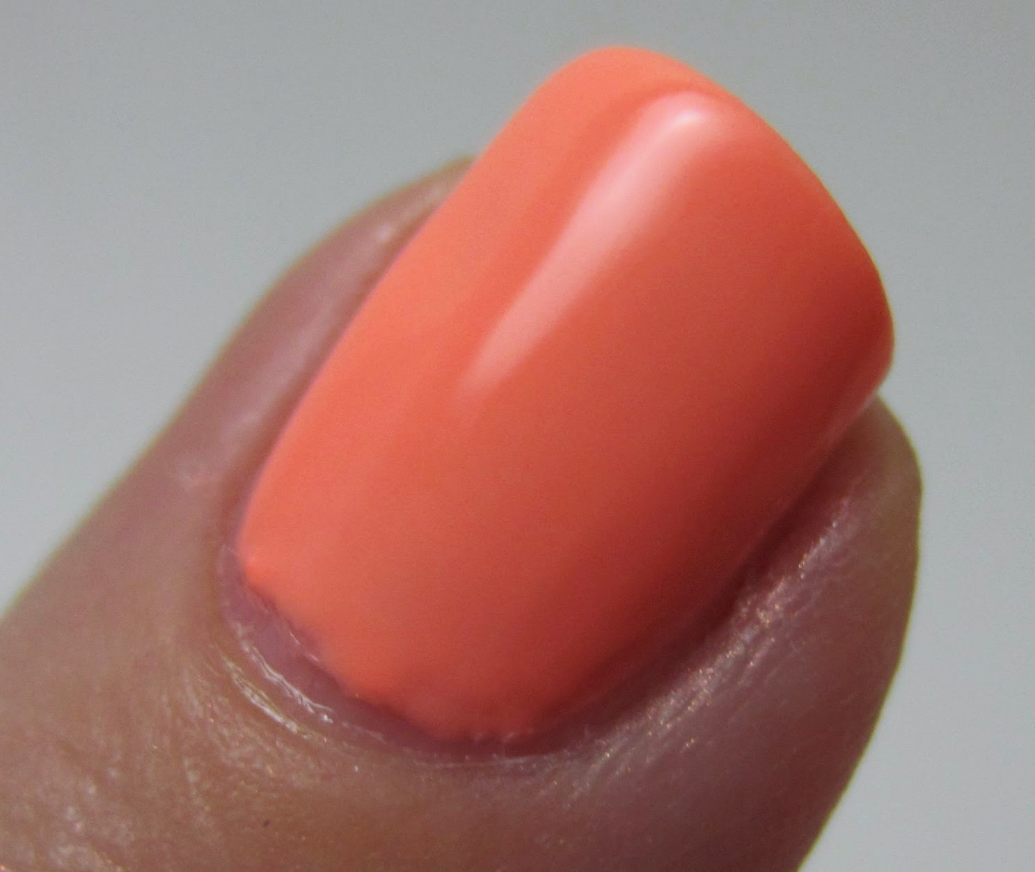 The last polish in this set is More to Explore. It is a coral-y pink color. Really pretty, and it has a good formula. This is two coats of More to Explore with one coat of top coat.